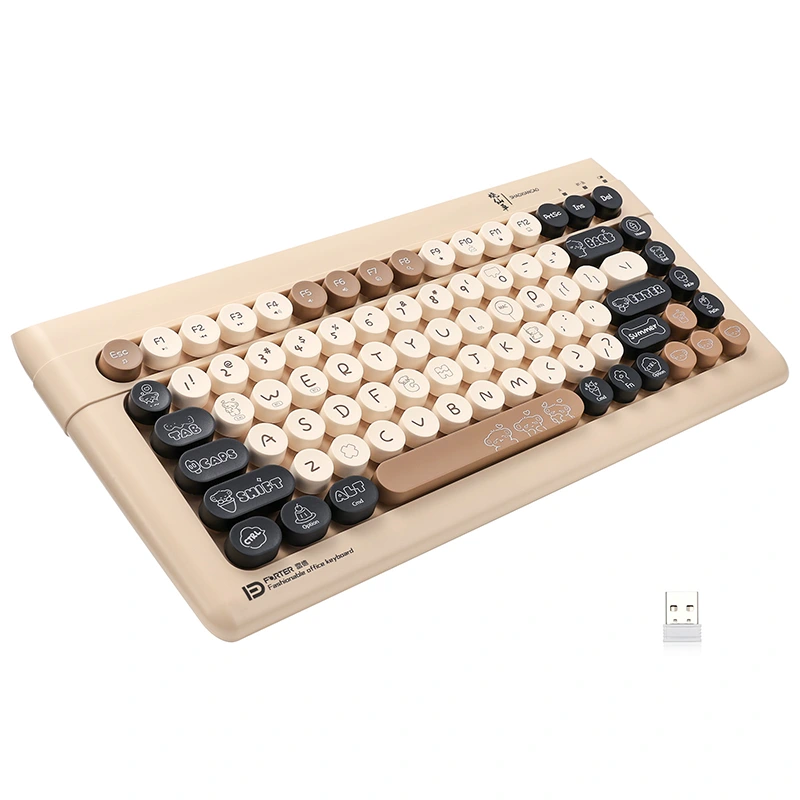 ❤ 컴팩트 & 패션 블루투스 키보드 ▶ 이 블루투스 키보드에는 84개의 원형 키가 있습니다. 60% 레이아웃 키보드로 컴팩트하고 휴대가 간편합니다. 패션 모양은 복고풍의 우아한 타자기 모양과 독특한 원형 키캡에서 영감을 받았습니다. FN + W/E 키를 누르면 Bluetooth 모드로 들어갑니다.
