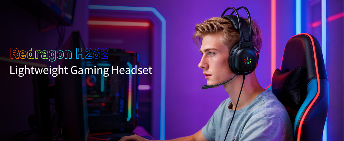 경량 구조와 인체공학적 이어 쿠션 덕분에 마이크가 장착된 블랙 H262 유선 게임용 헤드셋은 장시간 게임 세션에도 편안합니다.