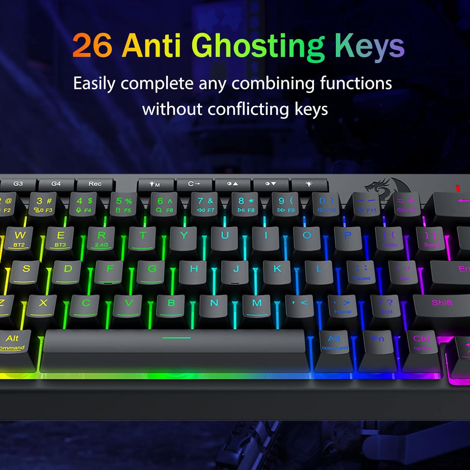 Chuangquan에서 제조한 Redragon의 Black K519 Pro 휴대용 무선 게임 키보드는 게이머와 전문가 모두를 위한 전문가급 엔지니어링의 모범을 보여줍니다. 다재다능한 3중 모드 디자인은 안정적인 Bluetooth, 짧은 대기 시간의 2.4GHz 무선 및 USB-C 유선 연결을 지원하여 세 장치 간에 동시에 손쉽게 전환할 수 있습니다. 키보드에는 직관적인 소프트웨어를 통해 완전히 사용자 정의할 수 있는 전용 매크로 키가 포함되어 있어 사용자는 향상된 생산성과 게임 효율성을 위해 복잡한 명령이나 단축키를 할당할 수 있습니다. 다양한 효과를 갖춘 동적 RGB 조명은 설정을 개인화하고 N 키 롤오버 및 안티 고스팅은 강렬한 세션 중에 모든 키 입력이 정확하게 등록되도록 보장합니다.