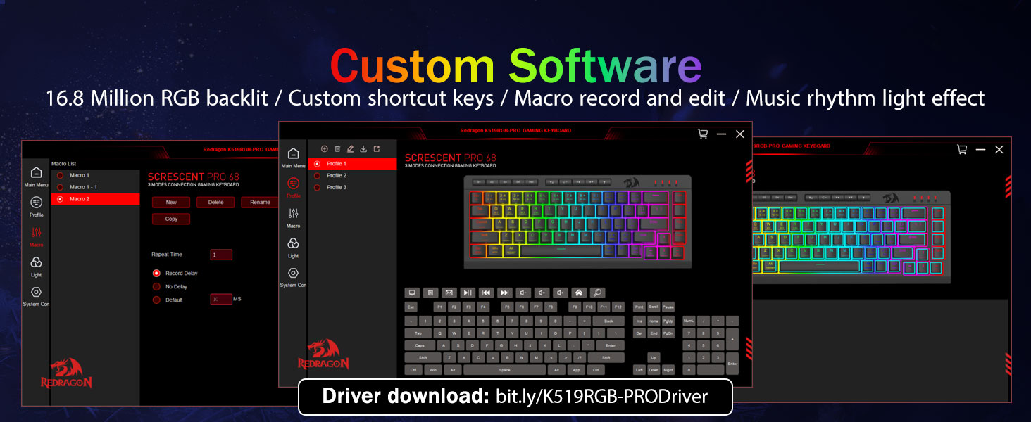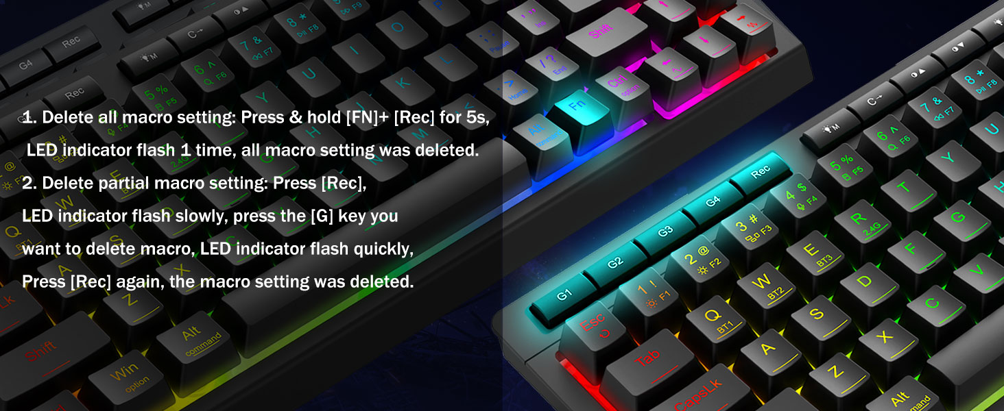 사용자 정의 가능한 매크로, 손쉬운 제어 -4개의 온보드 매크로 키(G1-G4)를 즉시 프로그래밍하세요. 소프트웨어가 필요하지 않습니다. 게임을 위한 복잡한 콤보, 생산성을 위한 단축키 또는 미디어 명령을 기록하세요. 몇 초 안에 워크플로를 재정의하세요. 소프트웨어를 사용하여 기능을 사용자 정의하고, 매크로를 생성하고, RGB 조명을 조정하고, 단축키를 설정할 수도 있습니다. 소프트웨어 링크: bit.ly/K524RGB-PRODriver