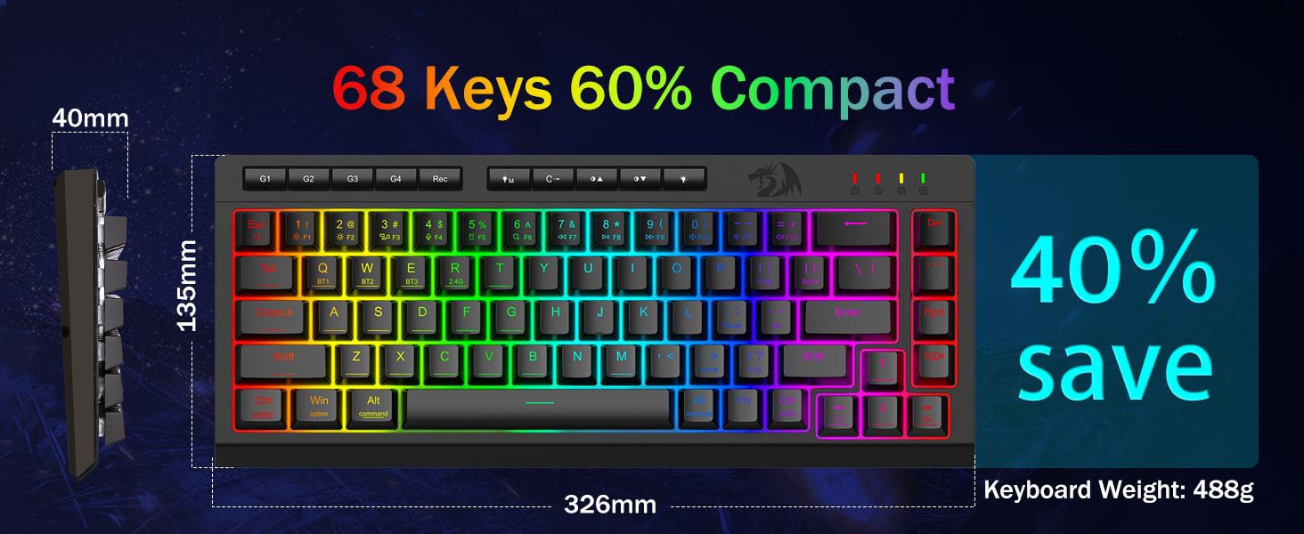 몰입형 RGB 조명 및 맞춤형 분위기 -4개의 온보드 매크로 키(G1-G4)를 즉시 프로그래밍하세요. 소프트웨어가 필요하지 않습니다. 게임을 위한 복잡한 콤보, 생산성을 위한 단축키 또는 미디어 명령을 기록하세요. 몇 초 안에 워크플로를 재정의하세요. 소프트웨어를 사용하여 기능을 사용자 정의하고, 매크로를 생성하고, RGB 조명을 조정하고, 단축키를 설정할 수도 있습니다. 소프트웨어 링크: bit.ly/K524RGB-PRODriver