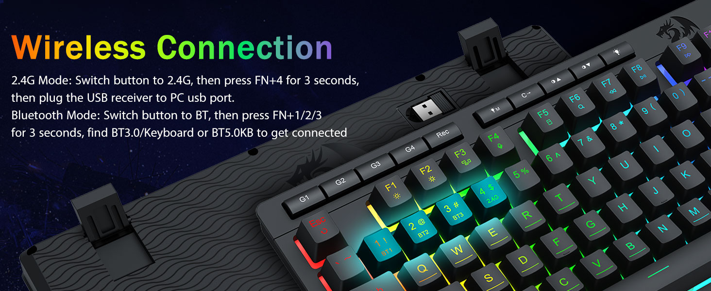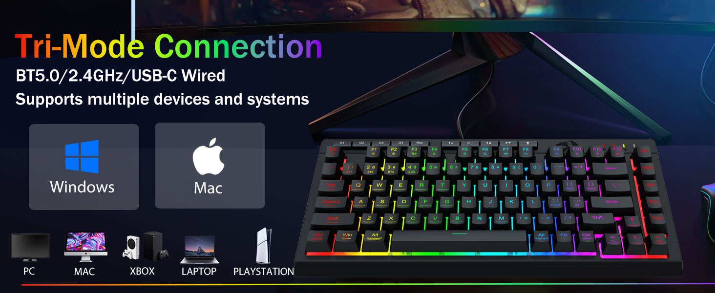 트라이 모드 다양성 및 다중 장치 숙달- Bluetooth 5.0, 2.4GHz 무선 또는 USB-C 유선 모드 간에 원활하게 전환하여 최대 5개의 장치(PC, Mac, 태블릿, 휴대폰, PS/XBOX)를 동시에 연결할 수 있습니다.