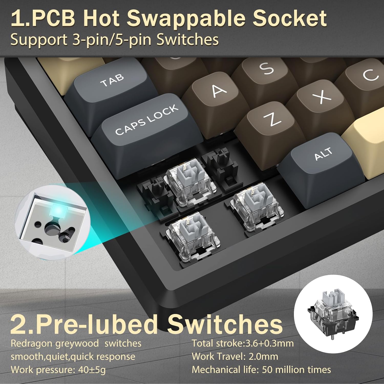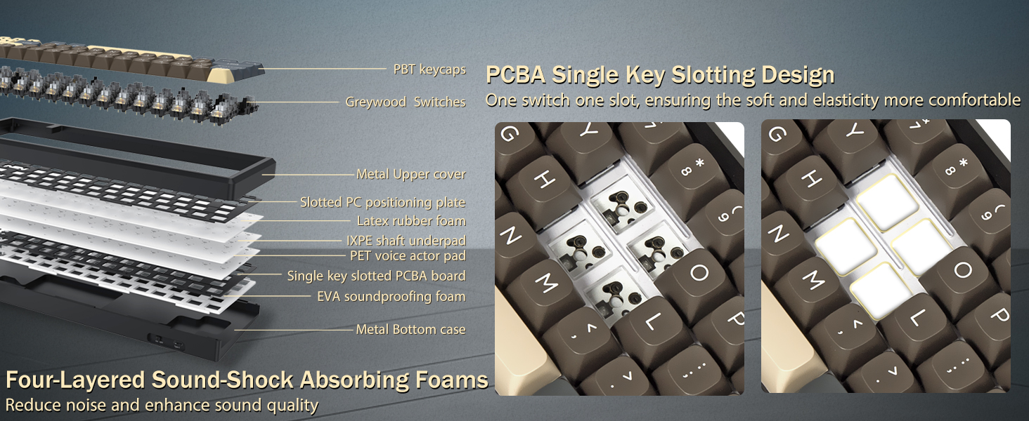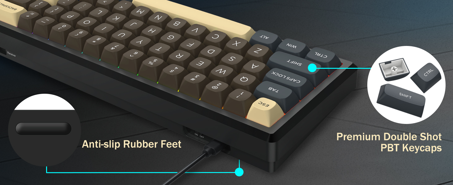 키캡은 내구성과 일관된 질감을 위해 설계되어 시간이 지나도 편안한 타이핑 경험을 유지하는 데 도움이 됩니다. 키보드 프레임은 사용 중에 안정성을 제공하여 타이핑이나 게임 세션 중에 움직임을 줄여줍니다.