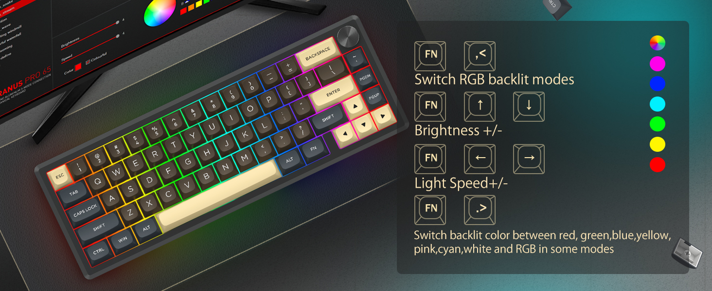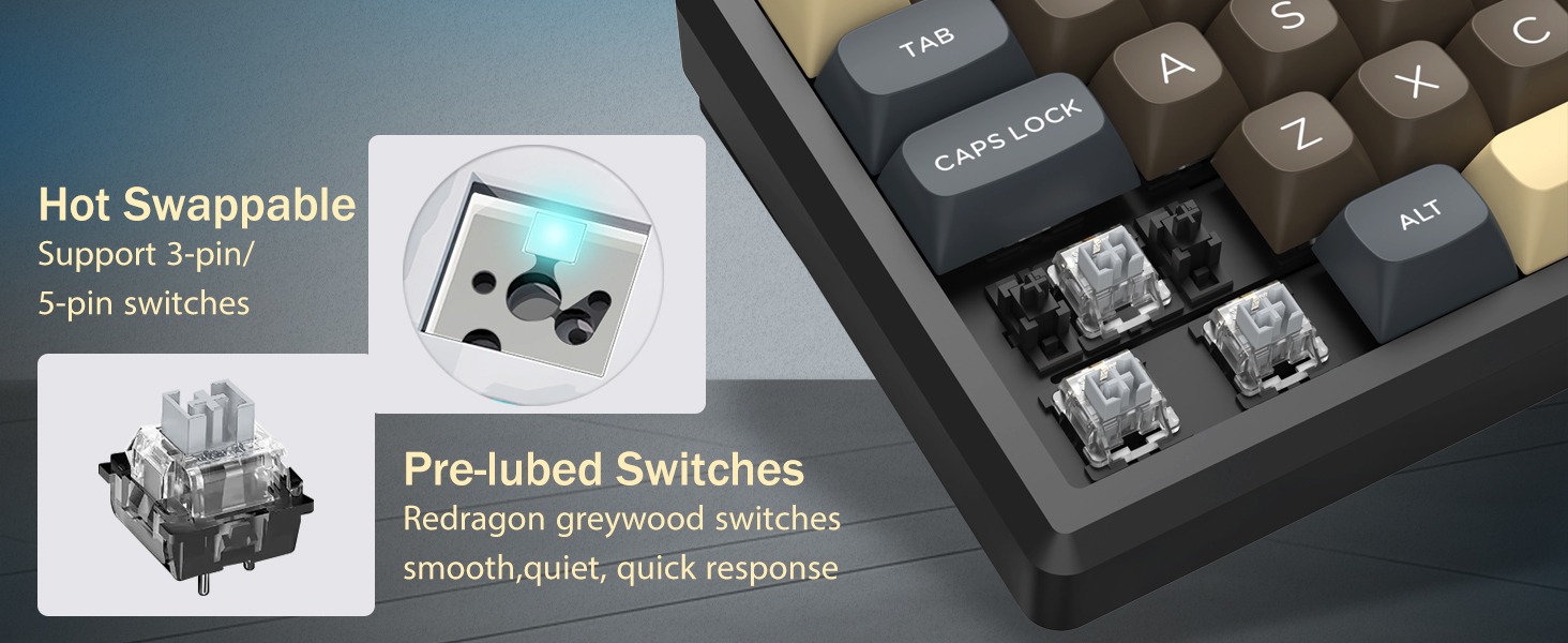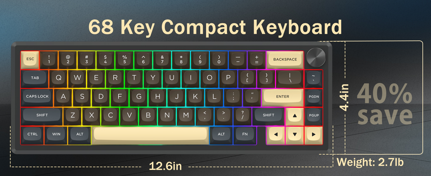 60% 레이아웃을 갖춘 이 키보드는 불필요한 키를 제거하는 동시에 키 조합을 통해 핵심 기능을 유지합니다. 이 디자인은 책상의 어수선함을 줄이고 마우스 이동을 위한 더 많은 공간을 제공하므로 게임 및 생산성 환경 모두에 적합합니다.
