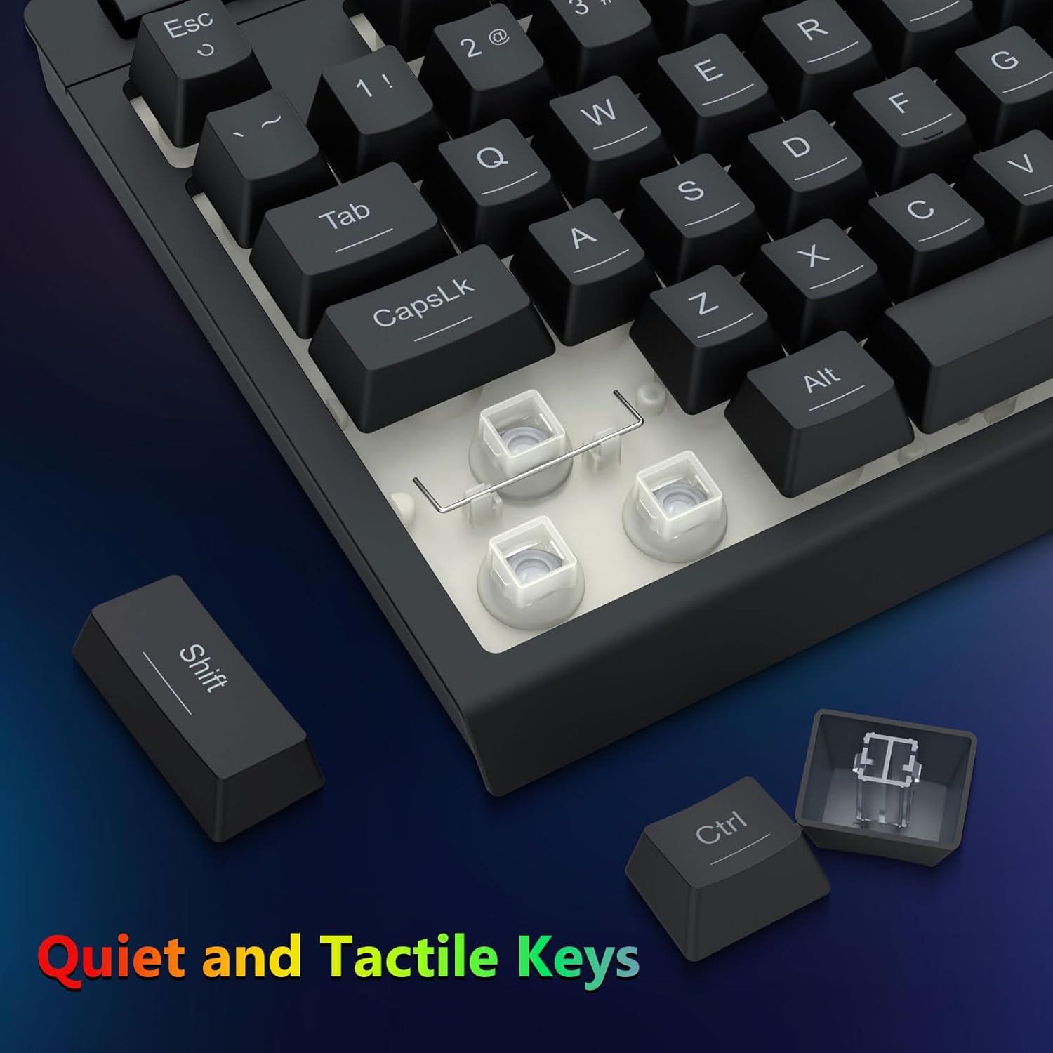 【편안한 게이밍】키보드의 접이식 스탠드, 피부 친화적인 코팅, 플로팅 키캡은 타이핑의 편안함을 높여줍니다. 26개 키 안티 고스팅으로 모든 버튼을 실행할 수 있습니다. 게임 시 WIN 키를 비활성화할 수 있습니다. 이 키보드와 마우스는 최대한의 편안함을 보장하면서 효율적인 게임 경험을 제공하는 데 전념하고 있습니다.