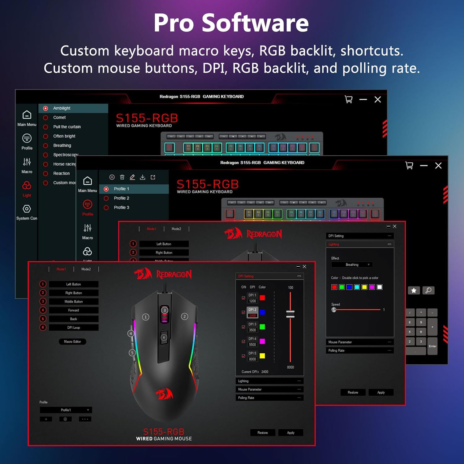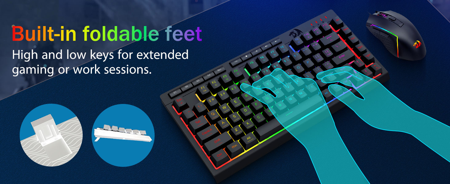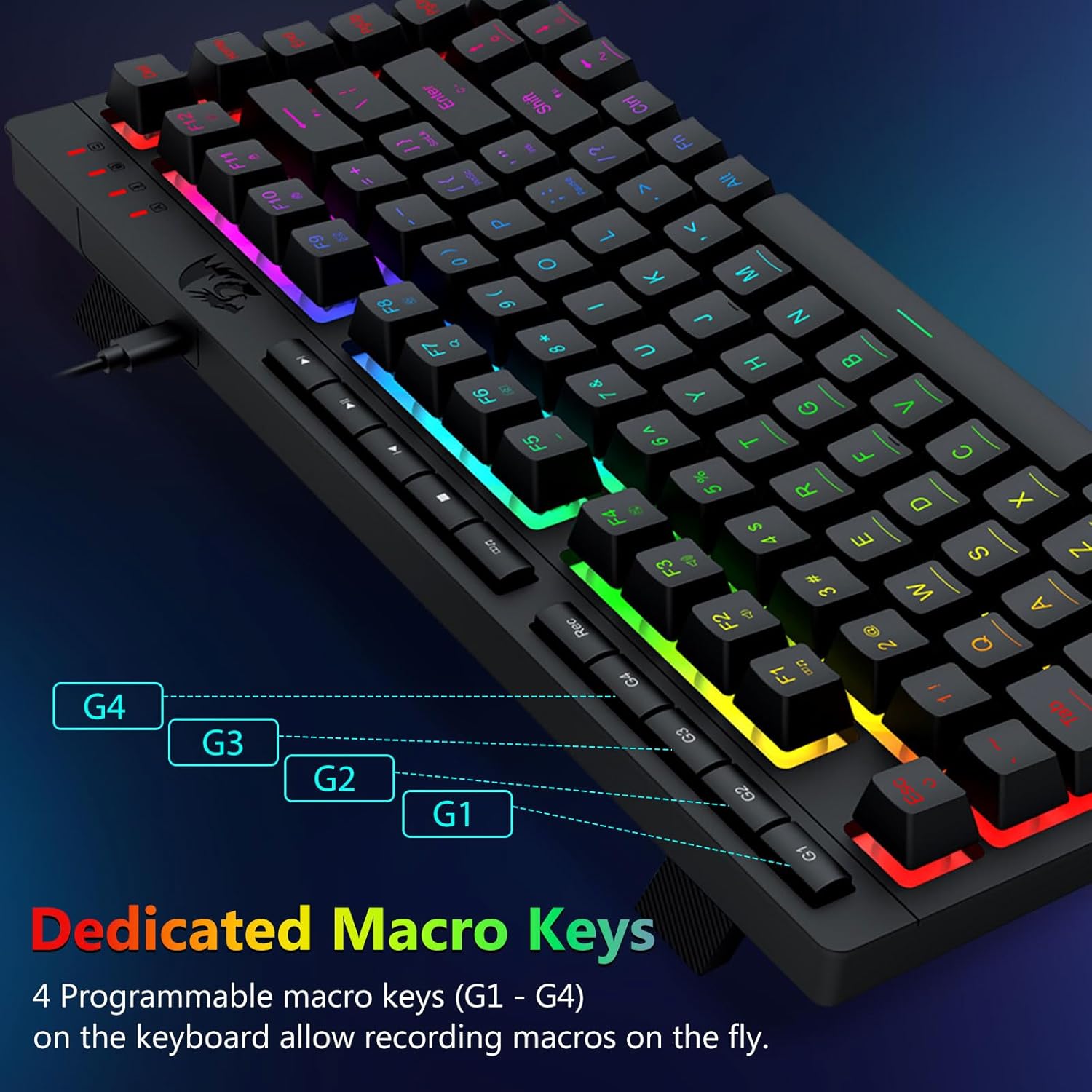 【RGB 게이밍 키보드 및 마우스】게이밍 키보드에는 선택할 수 있는 8가지 RGB 조명 모드가 있고 게이밍 마우스에는 전환할 수 있는 8가지 조명 효과가 있으며 키보드는 원하는 대로 4단계 속도와 밝기로 조정할 수 있습니다. 키캡은 깨끗하고 균일한 백라이트를 제공합니다. 세트가 단일 조명이든, 조명 효과를 변경하든, 조명이 전혀 없든 Redragon 게이밍 키보드와 마우스는 귀하의 요구를 충족할 것입니다!