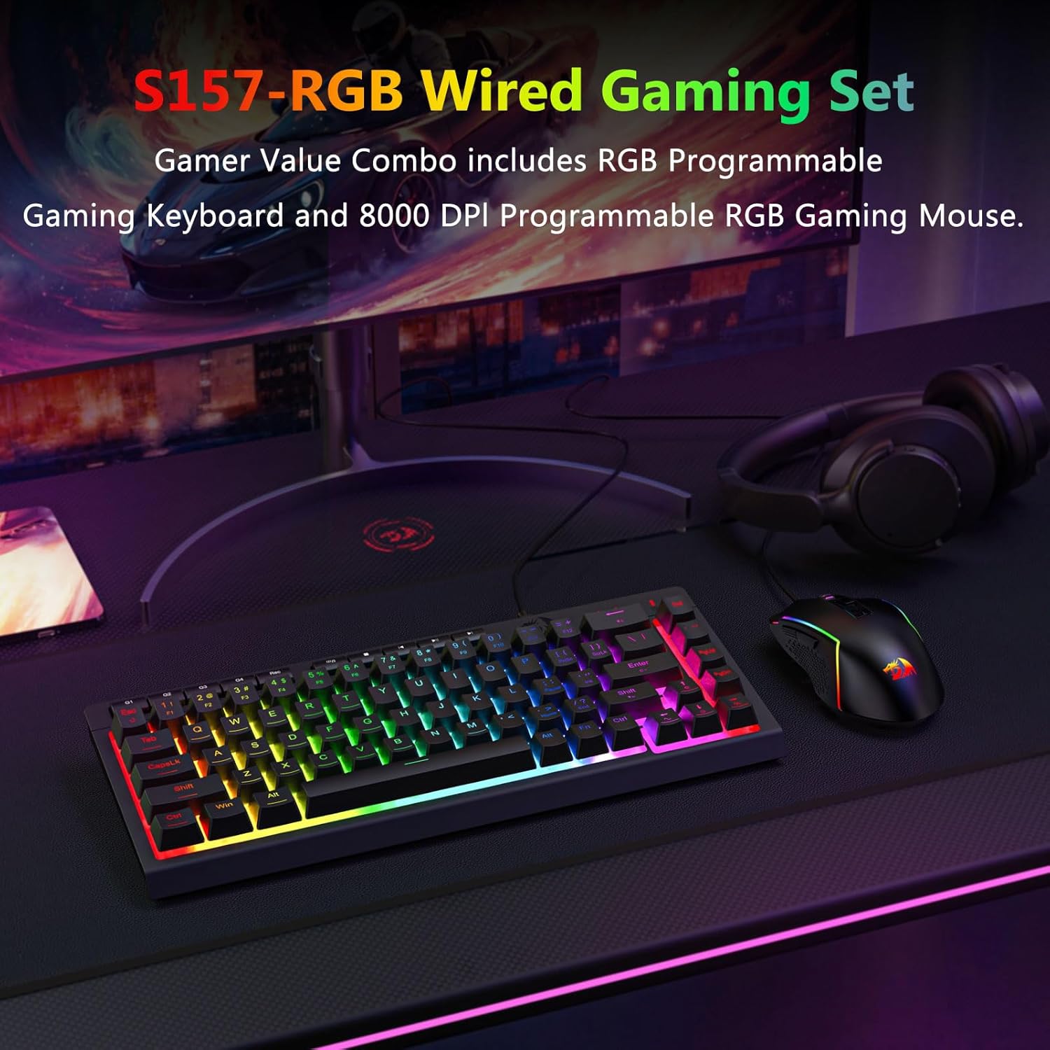 Q1: 블랙 S157 RGB 백라이트 유선 게이밍 키보드 및 마우스 콤보는 게임과 사무용 모두에 적합합니까?