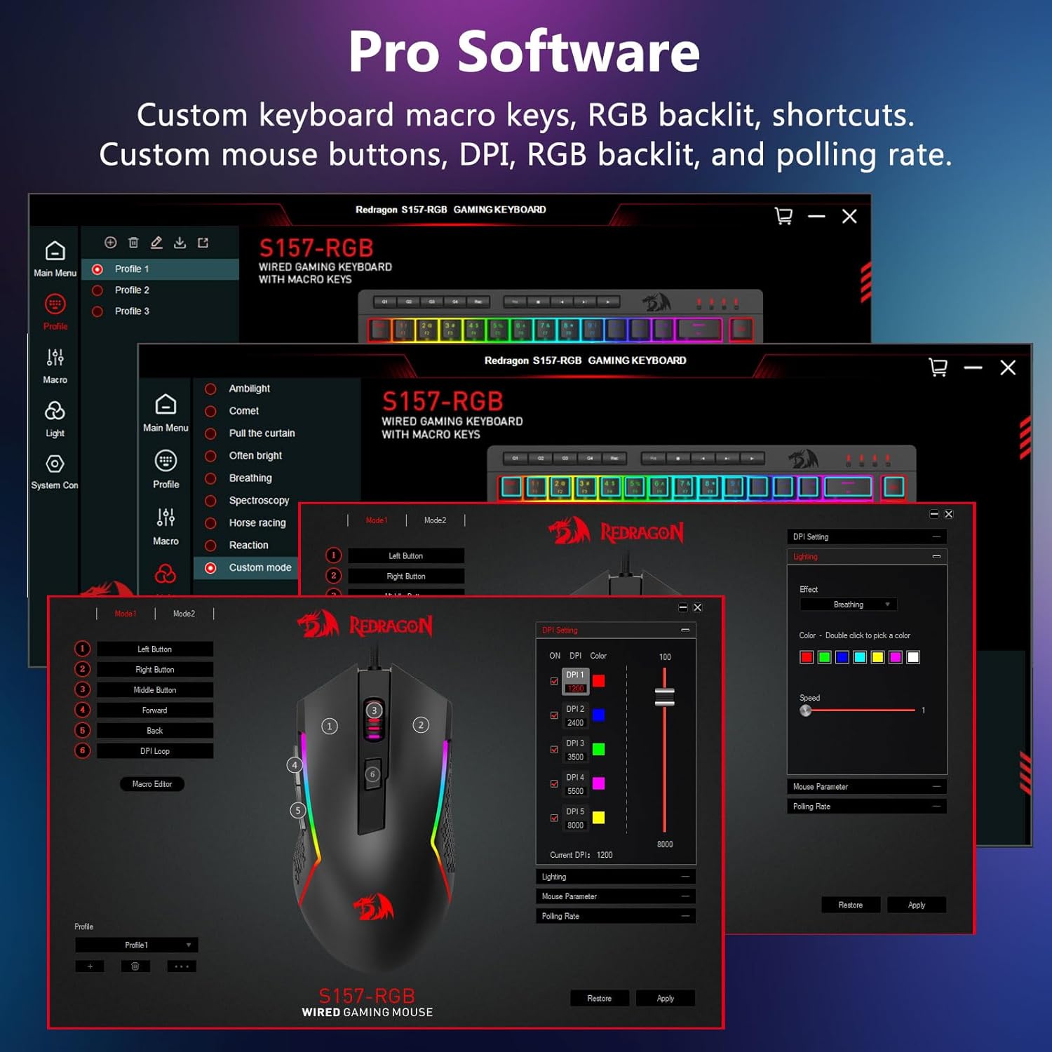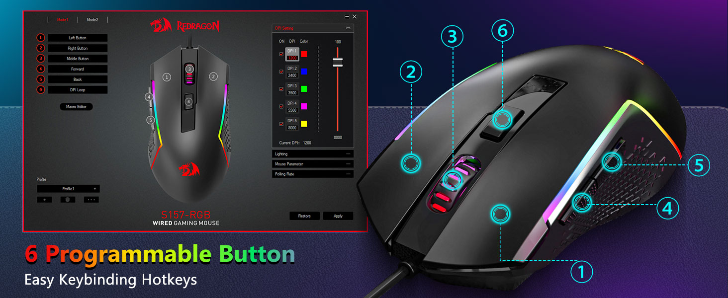 통합 RGB 조명은 어두운 환경에서 주요 가시성을 향상시킵니다. 조명 시스템은 다양한 모드를 제공하므로 사용자는 자신의 선호도에 따라 밝기와 효과를 조정할 수 있습니다.
