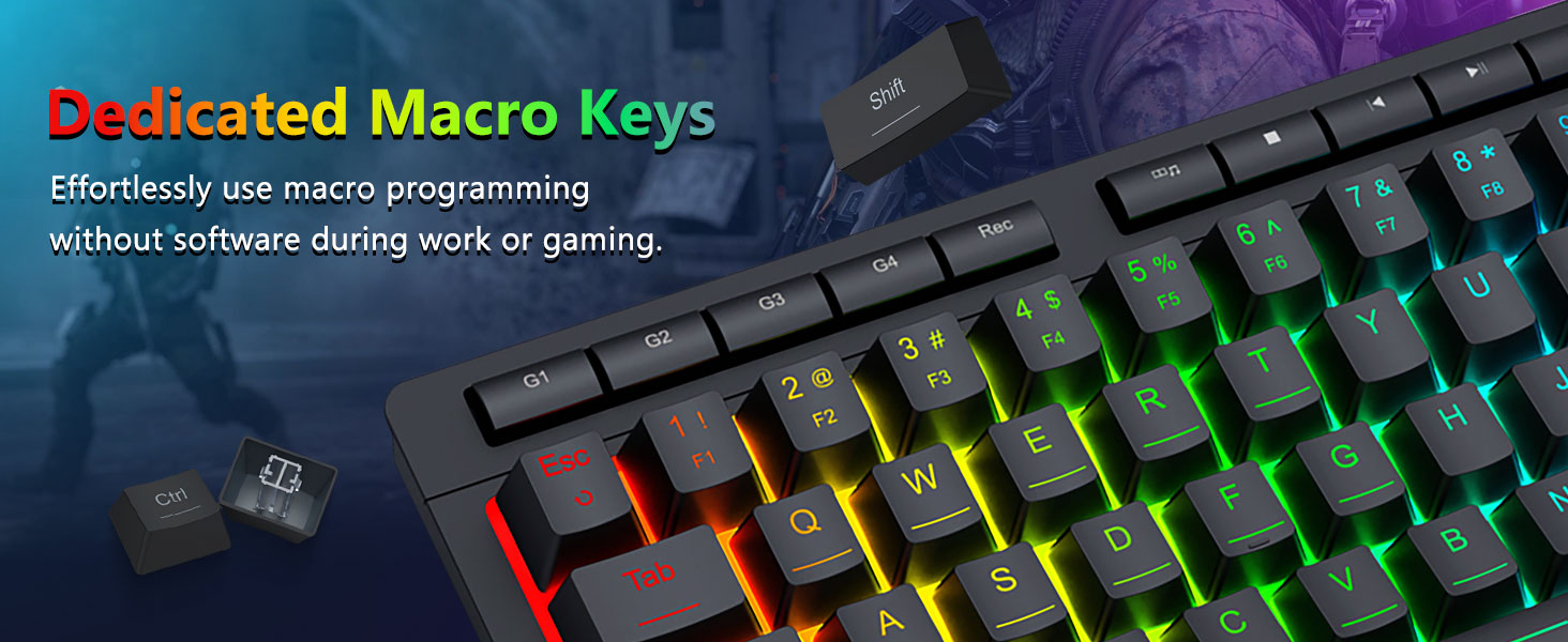 블랙 S157 RGB 백라이트 유선 게이밍 키보드 및 마우스 콤보는 다양한 시나리오에서 일관된 성능을 제공합니다. 키보드는 정확한 키 입력을 지원하고 마우스는 탐색 및 게임 플레이에 대한 안정적인 추적을 제공합니다.