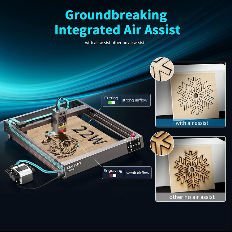 FALCON 22W 출력 레이저 커터 DIY 레이저 조각사, 22W 출력 레이저 커터 DIY 레이저 조각 기계, 25000mm/min 속도 통합 에어 지원 목재, 금속, 아크릴, 가죽 용 미리 조립 된 레이저 조각사
