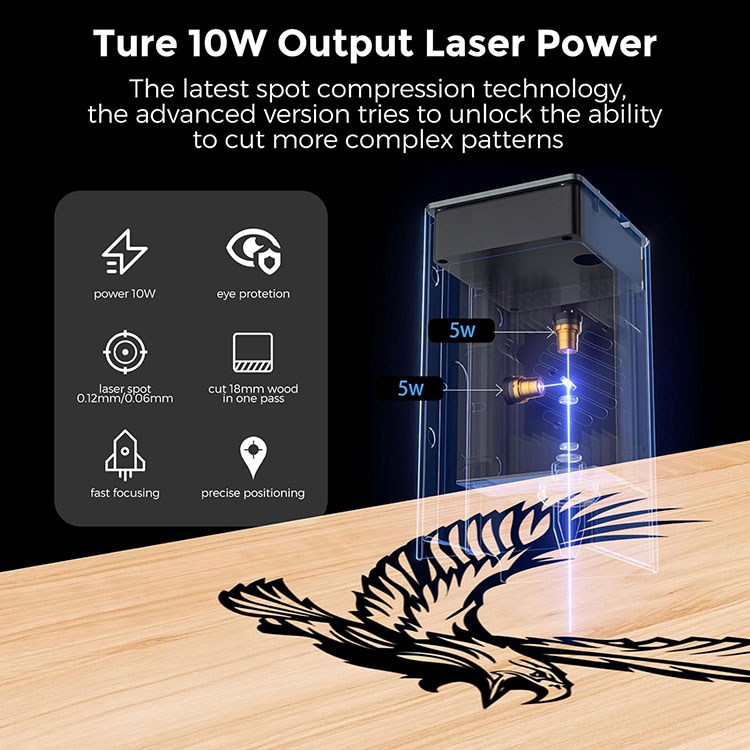레이저 조각기 Falcon Pro 10W 레이저 커터, 맞춤형 선물용 Falcon Pro 10W 레이저 커터, 에어 어시스트가 있는 고정밀 레이저 조각기, CNC 기계 및 목재 및 금속, 종이, 아크릴, 유리용 레이저 조각기