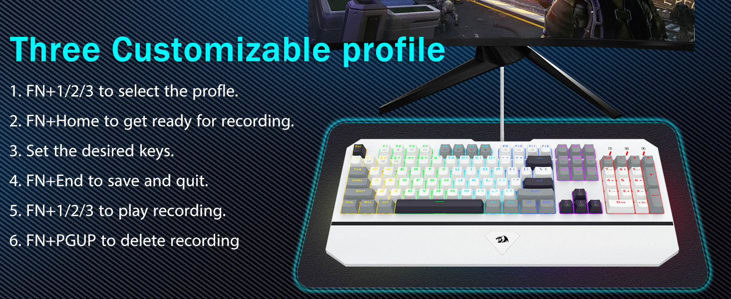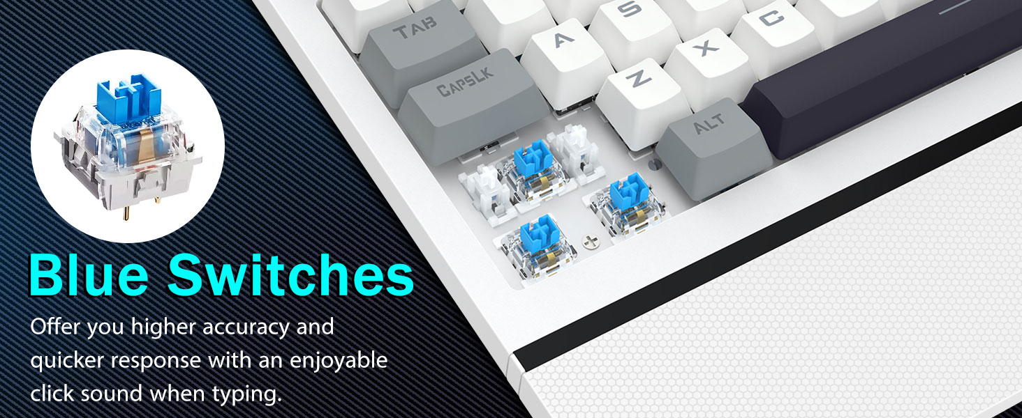 【정확한 타이핑을 위한 반응형 블루 스위치】당사의 PC 키보드에는 빠른 응답 시간과 놀라운 정확성을 제공하는 클릭형 파란색 스위치가 있습니다. 각 키 입력은 만족스러운 클릭 사운드를 생성하여 타이핑 경험을 향상시킵니다. 더 깊은 키 이동, 더 강력한 피드백, 더 넓은 키 간격을 통해 타이핑이 더 정확할 뿐만 아니라 훨씬 더 편안합니다. 촉각적이고 "클릭하는" 느낌을 좋아하신다면 당사의 키보드가 완벽한 선택입니다.