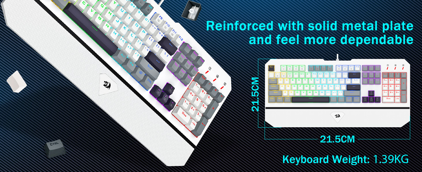 【고급 104키 풀사이즈 키보드】최고급 금속 합금과 ABS 소재로 제작된 키보드 패널은 매우 견고하고 긁힘에 강합니다. 금도금 USB 커넥터는 최고의 게임 성능을 위한 안정적이고 안정적인 연결을 보장합니다. 1.39kg의 무게로 손에 쥐었을 때 견고한 탱크 같은 느낌을 주는 이 키보드는 사용 중에 비교할 수 없는 안정성을 제공합니다.